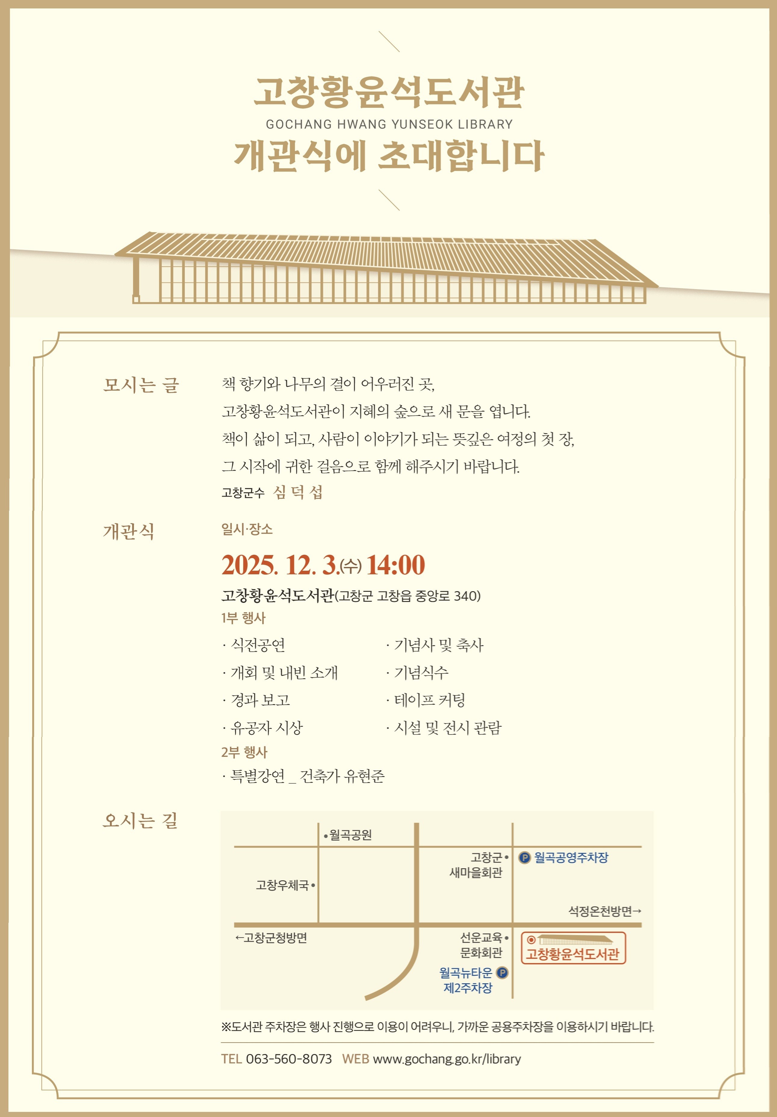 고창황윤석도서관 개관 및 개관식 개최 알림