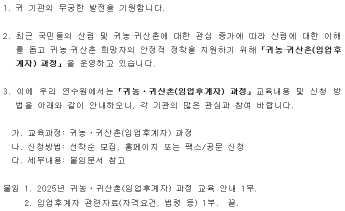 1._2025년_귀농귀산촌(임업후계자)_과정_교육_안내.hwp