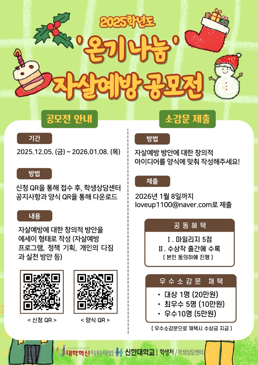 2025학년도 학생상담센터 『온기 나눔-자살예방 공모전』을 개최합니다.