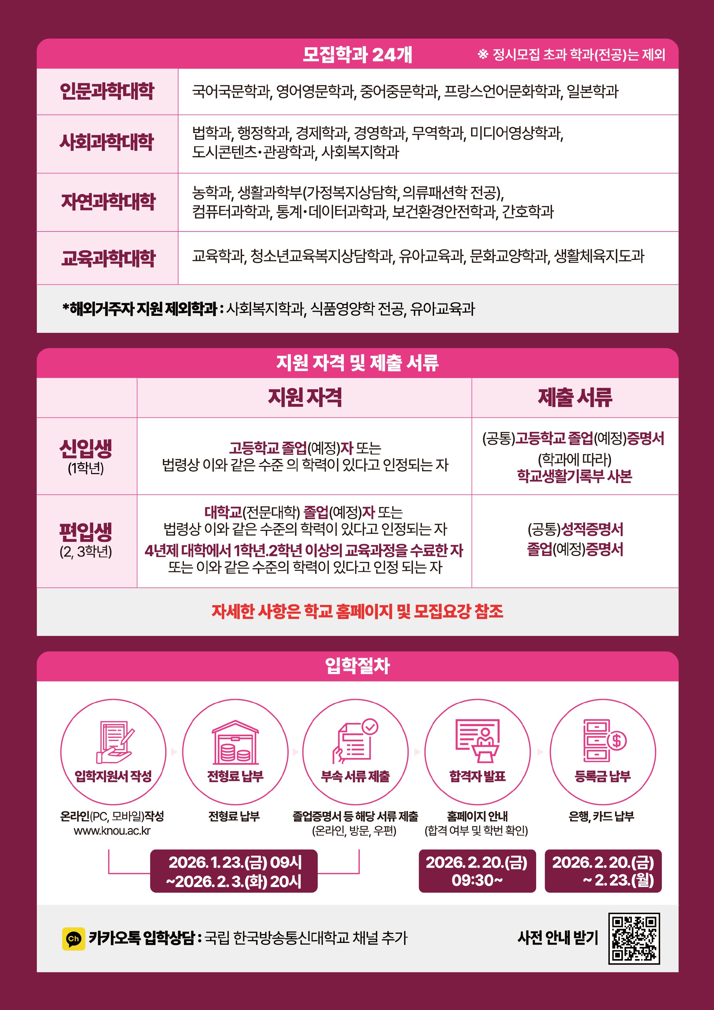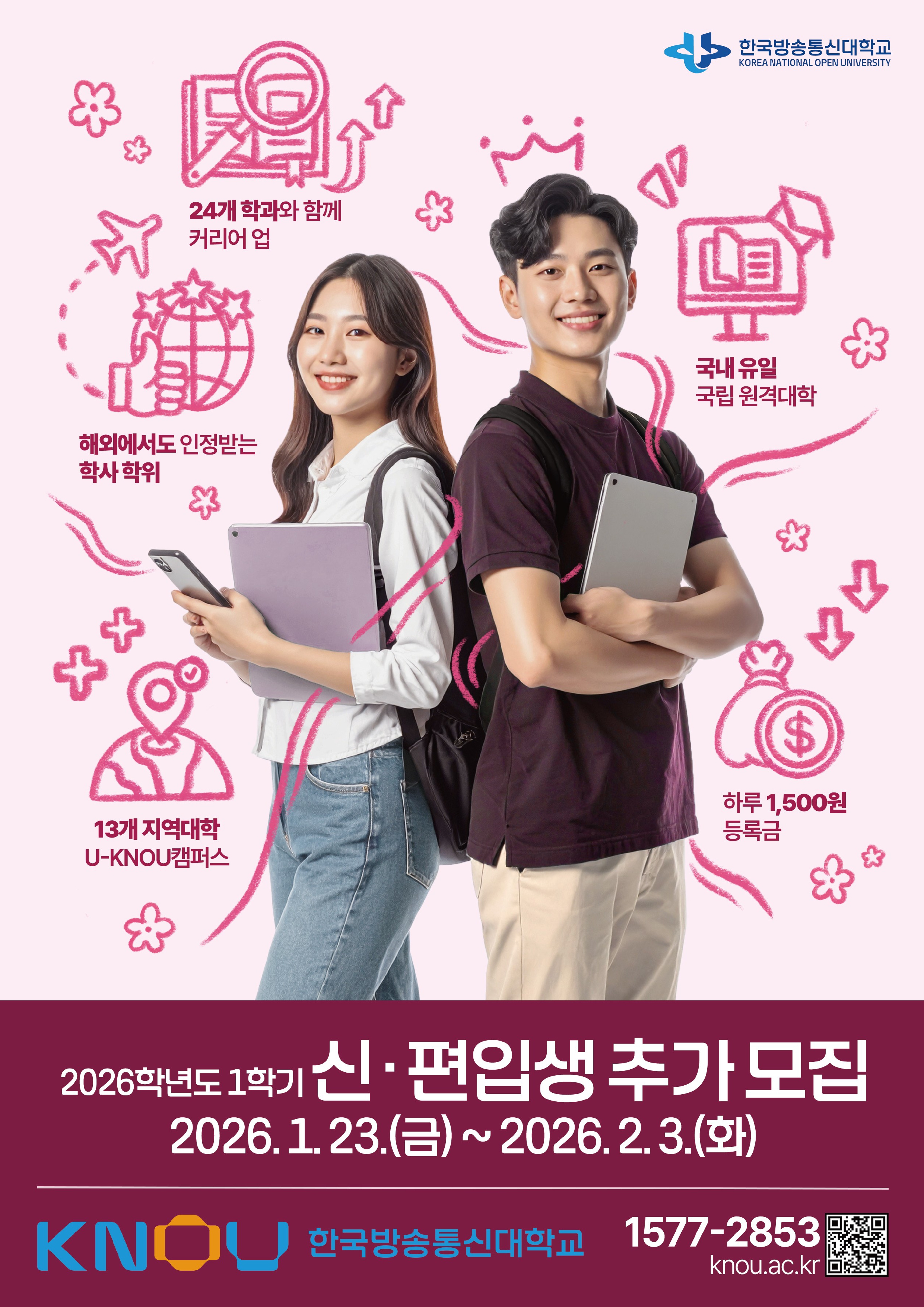 2026학년도 1학기 국립 한국방송통신대학교 신·편입생 추가모집 안내