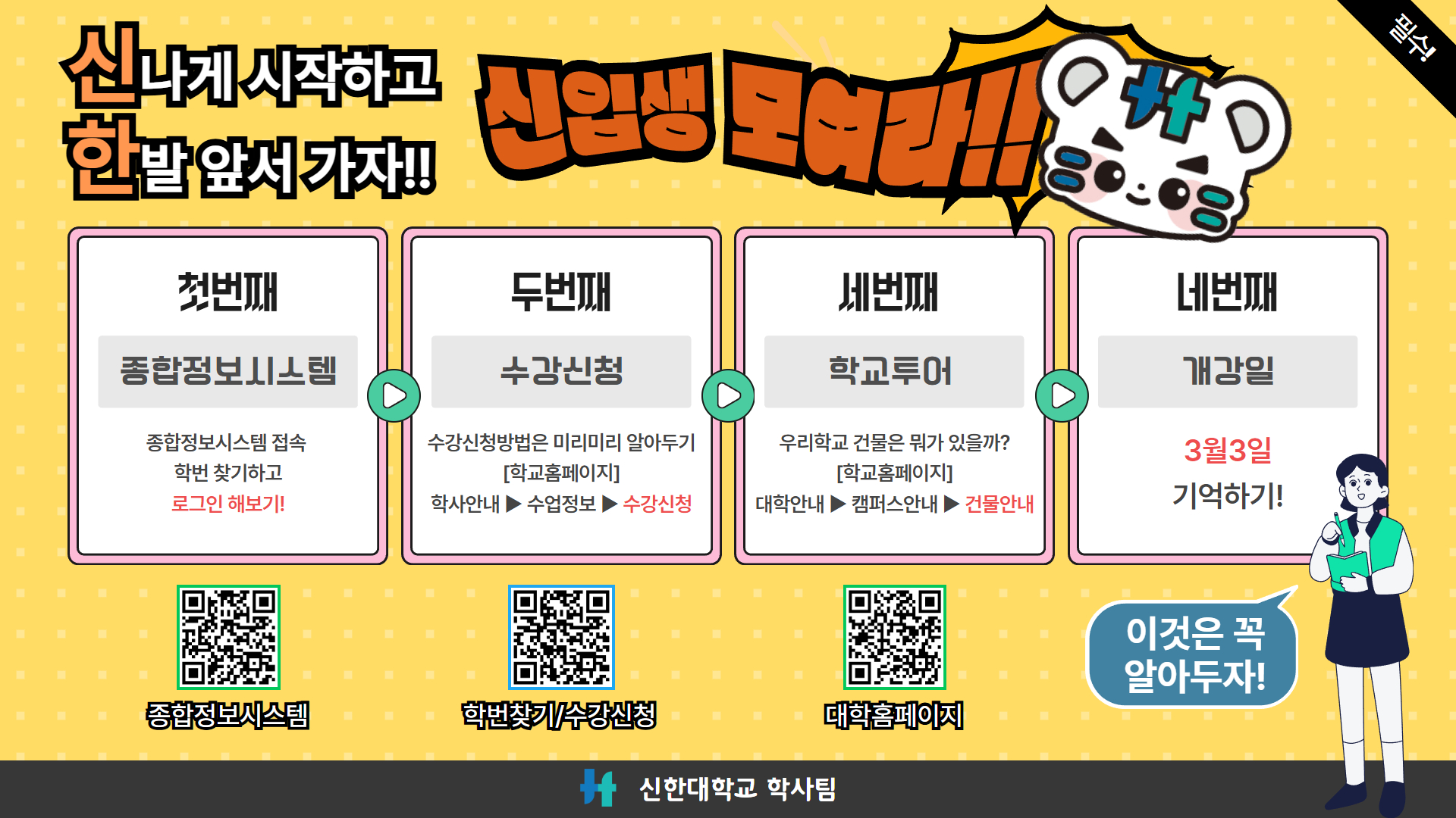 - 1학년 수강신청 기간: 2026.02.23.(월) 10:00~16:00