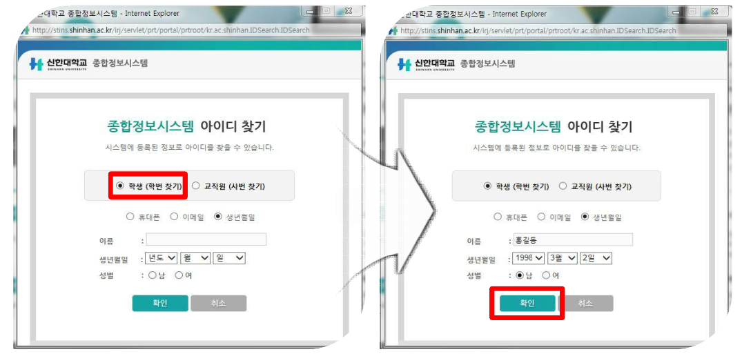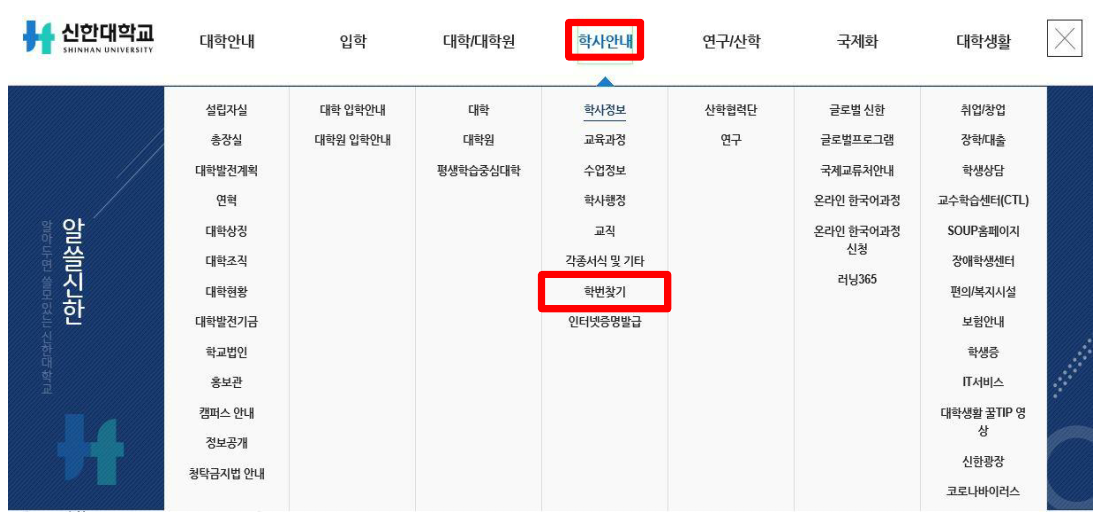 2. 학사안내 – 학번찾기 클릭
