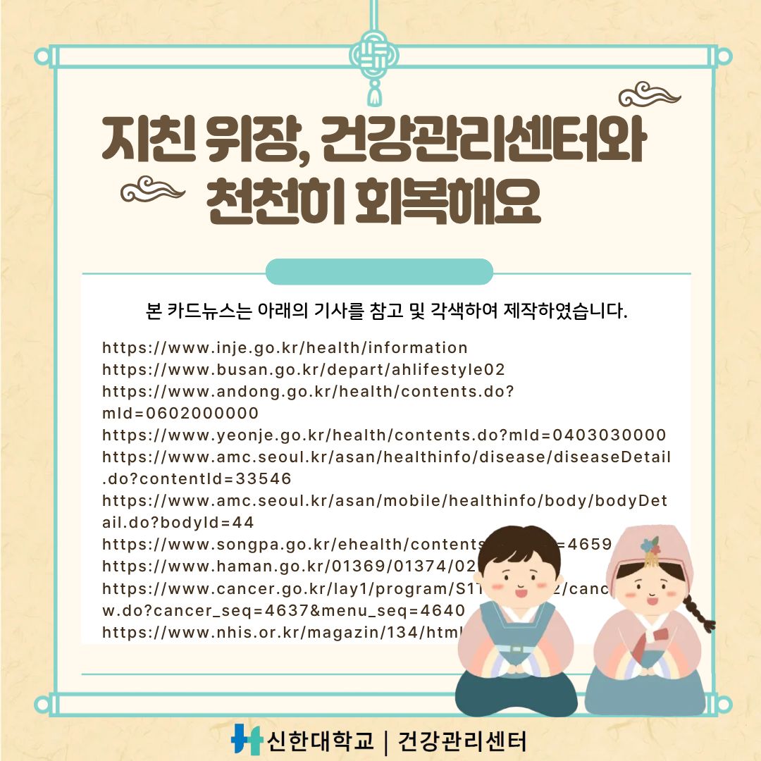 [건강관리센터] 건강정보 카드뉴스-"명절·연초 과식 후 위장 건강 관리법"