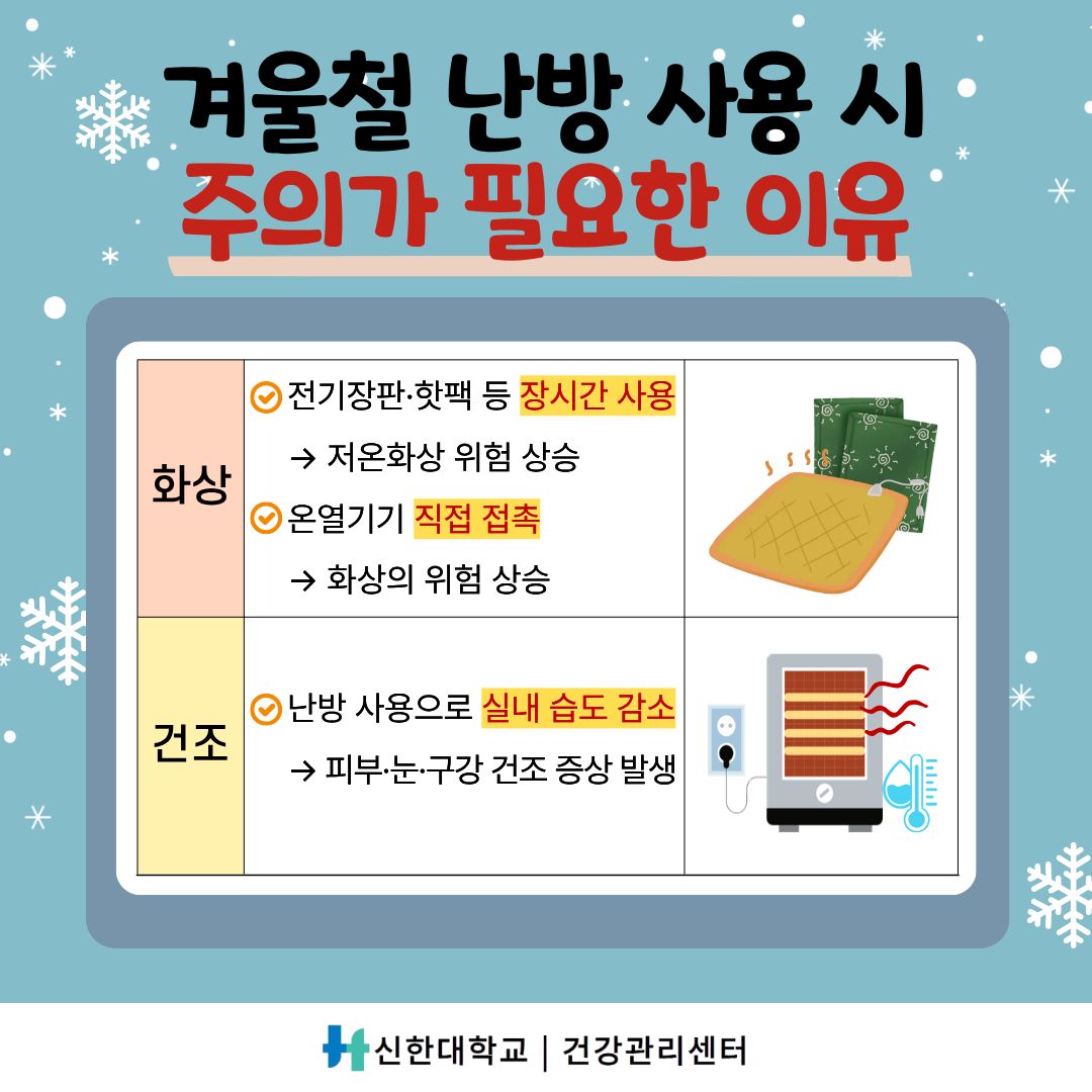 [건강관리센터] 건강정보 카드뉴스-"겨울철 난방의 두 얼굴, 화상과 건조 예방하기"
