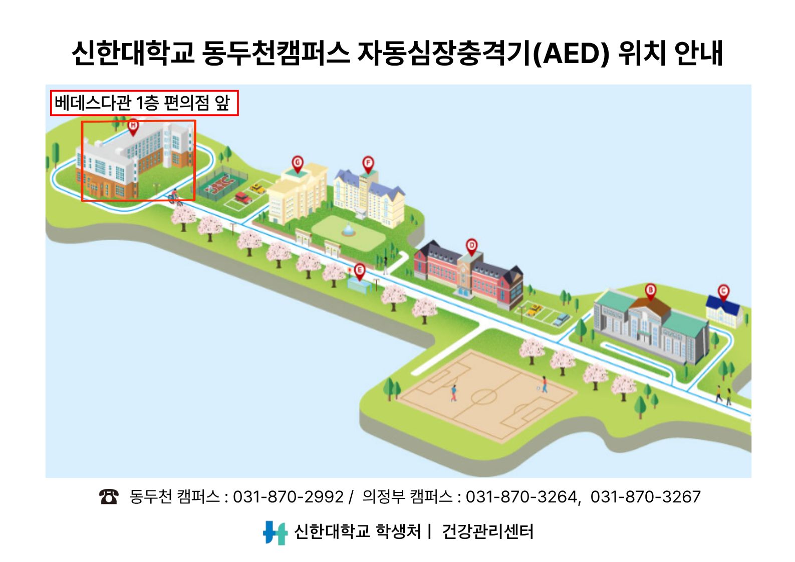 [건강관리센터] 자동심장충격기(AED) 위치 안내