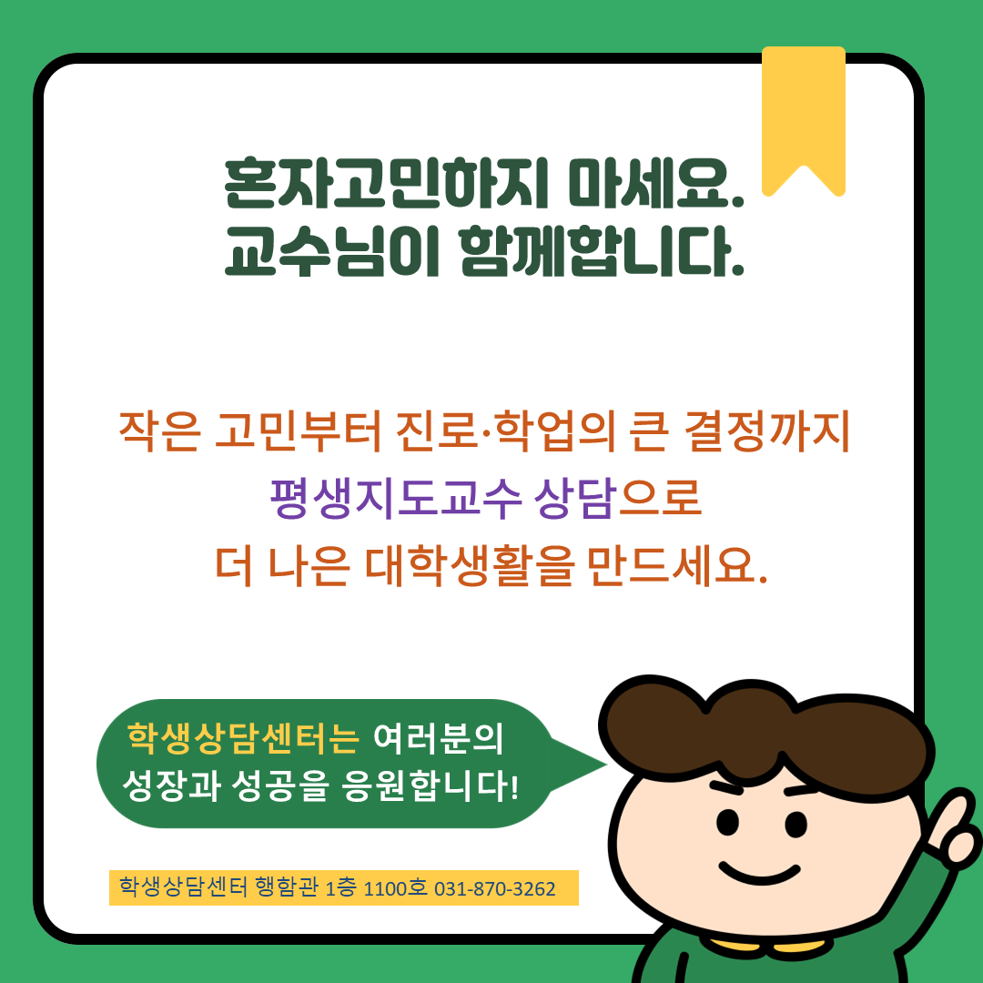 신한대학교 학생 여러분께 평생지도교수 상담가이드를 통해 교수님과 나누면 좋은 상담 주제들을 소개해드립니다:)